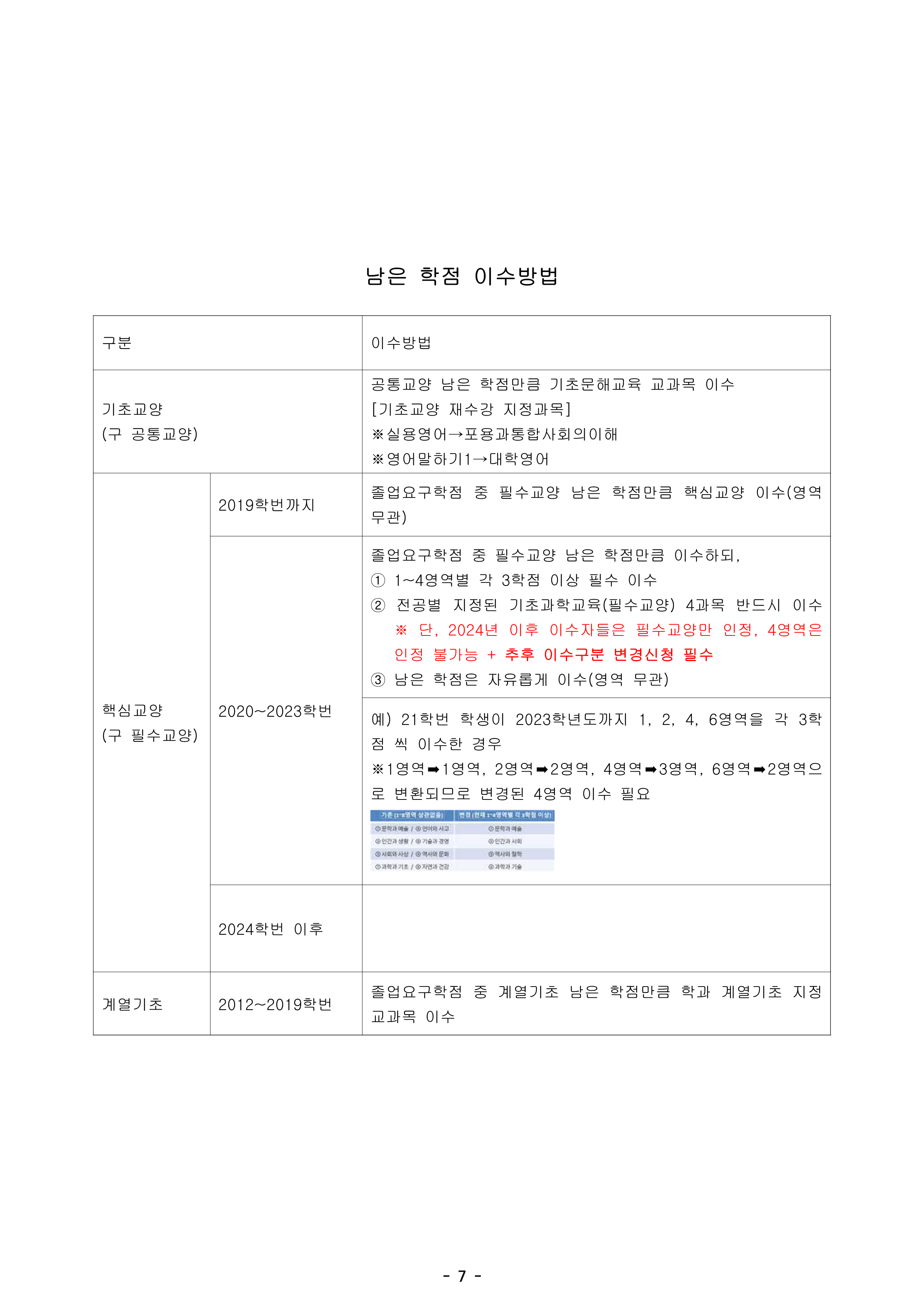 학번별로 졸업에 필요한 교양과목을 총정리하였으니 참고하시기 바랍니다.