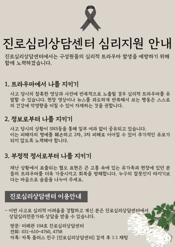 전화(031-610-4760, 4758) 주셔서 반드시 심리상담을 받으시기 바랍니다.감사합니다.