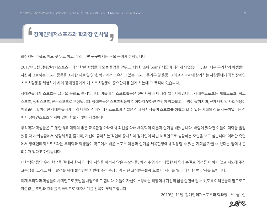 2019학년도 국립한국복지대학교 장애인레저스포츠과 제1회 소마(soma)제