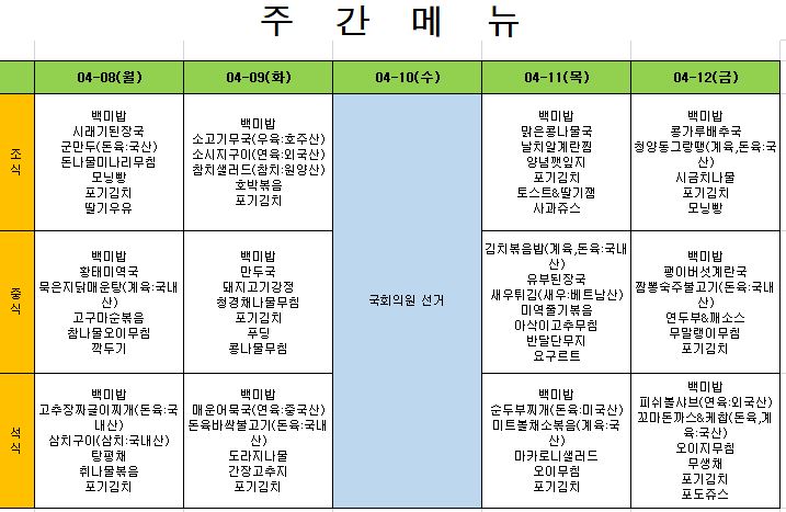 2024.4.1. ~ 2024. 4. 5. 주간식단표