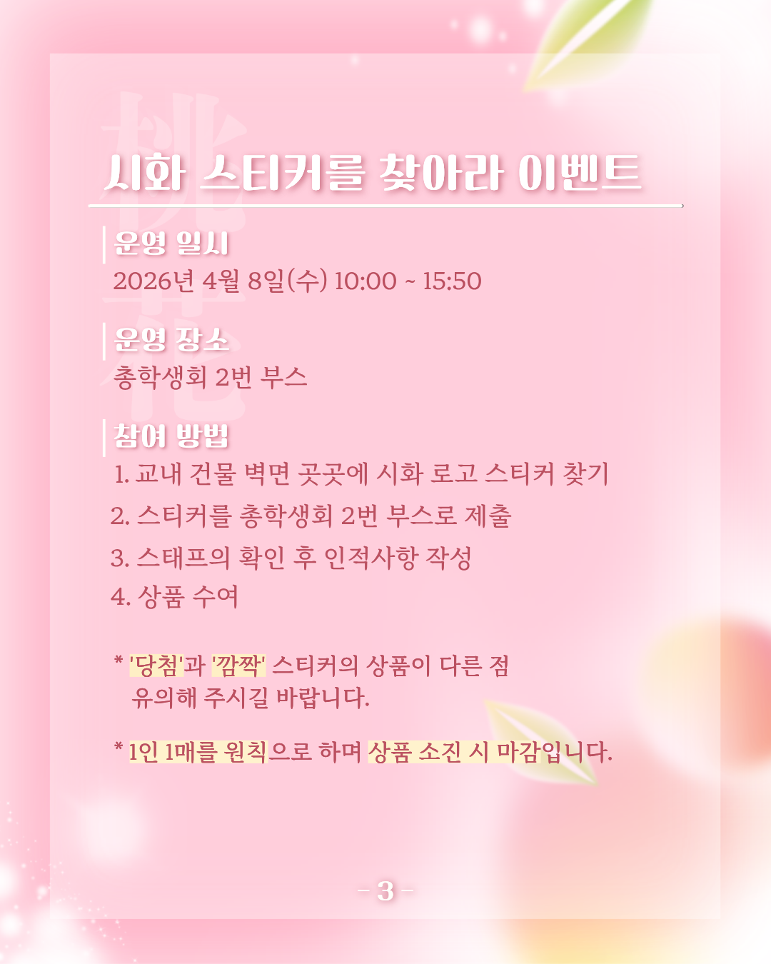 4μ 8μΌ μμμΌμ μ§νλλ ζ‘θ±[λν] λμ리 λ°λν μ΄νμν μ΄λ²€νΈ λΆμ€ μ΄μ μλ΄λ립λλ€!