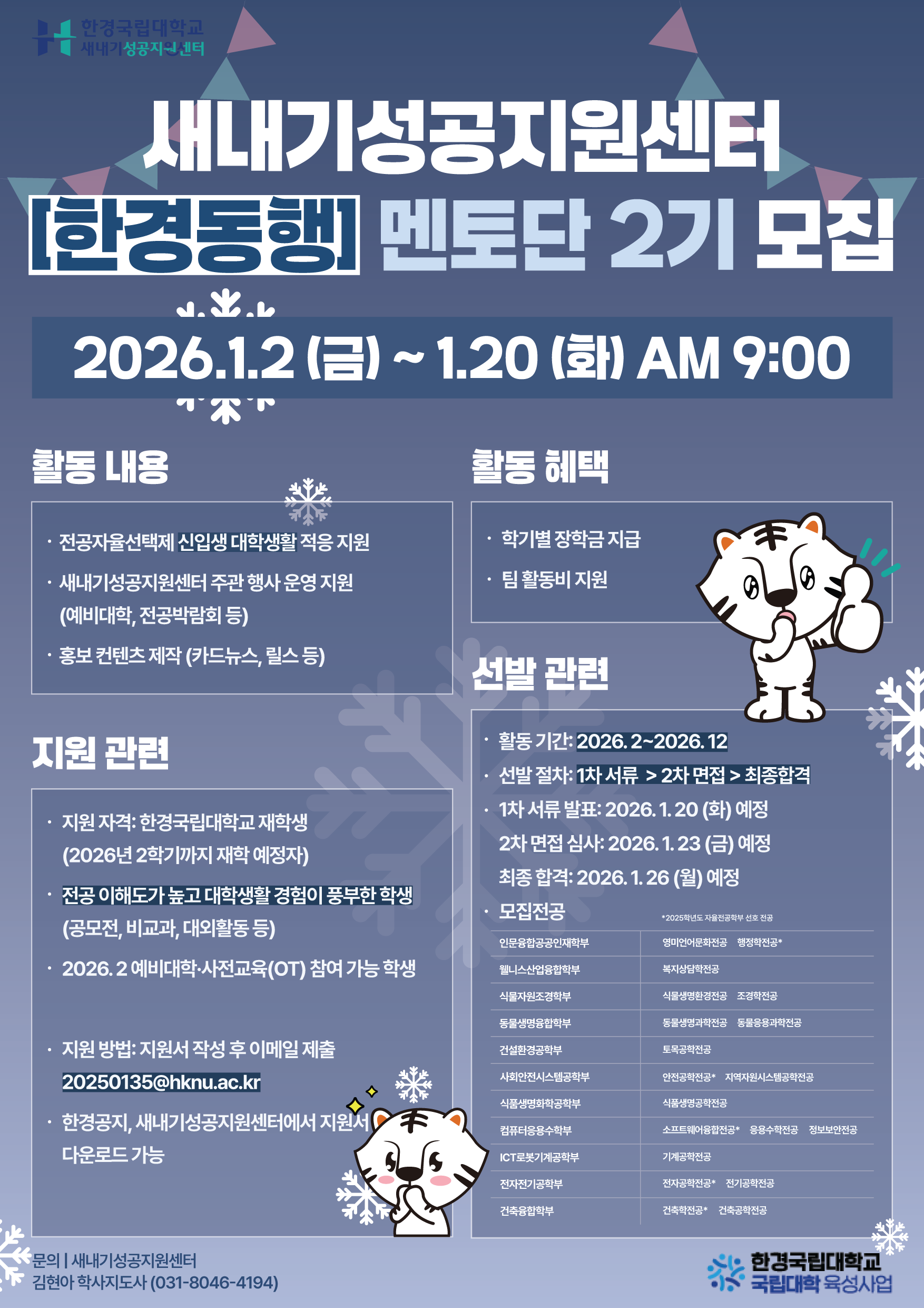 접수 기간 : 2026년 1월 2일(금) ~ 1월 20일(화) 오전 9시까지
